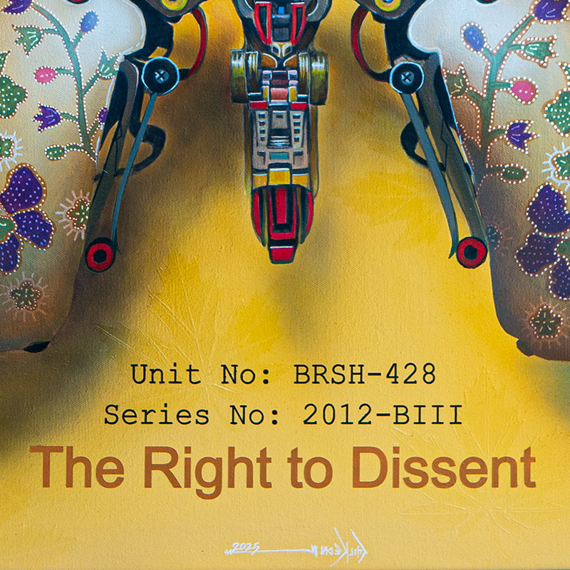 “The Right to Dissent” was born from my desire to record and reflect upon a pivotal moment in Malaysia’s democratic journey. I do not see this work as a political slogan, but as a living memory of the people who once gathered, raised their voices, and demanded fairness. By transforming the mechanical butterfly with batik wings, I wish to preserve not only the fragility and resilience of dissent, but also to remind us that history is not distant—it continues to echo in who we are today.